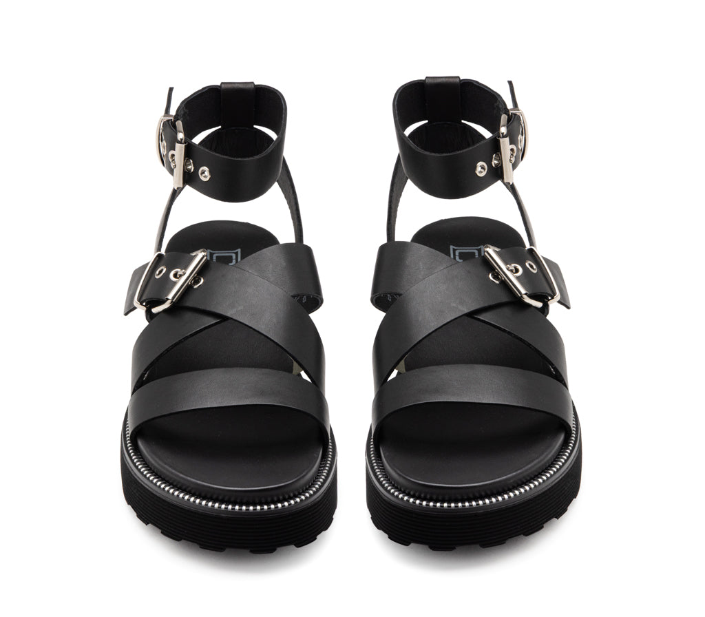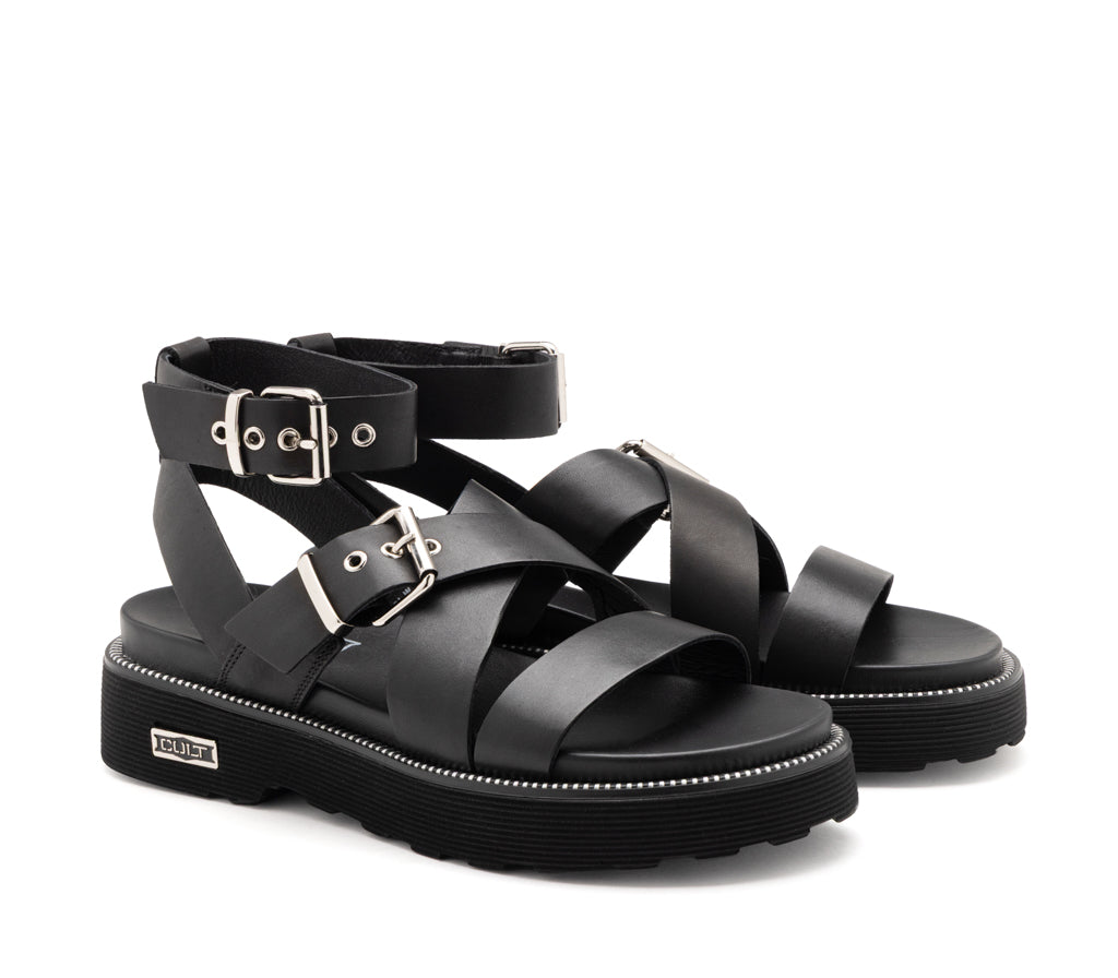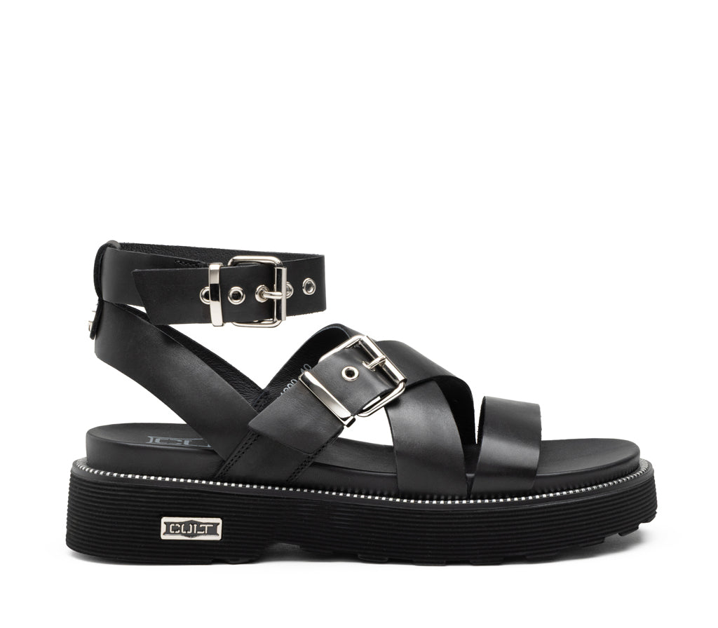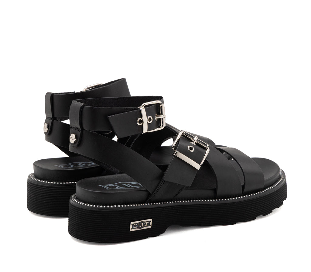A must-have in your seasonal wardrobe, Cult's chunky sandals will add character and style to your summer looks. Crafted from black leather, they feature straps with metal buckles and rest on a generous rubber sole. Choose them with both shorts and dresses.