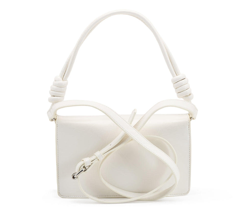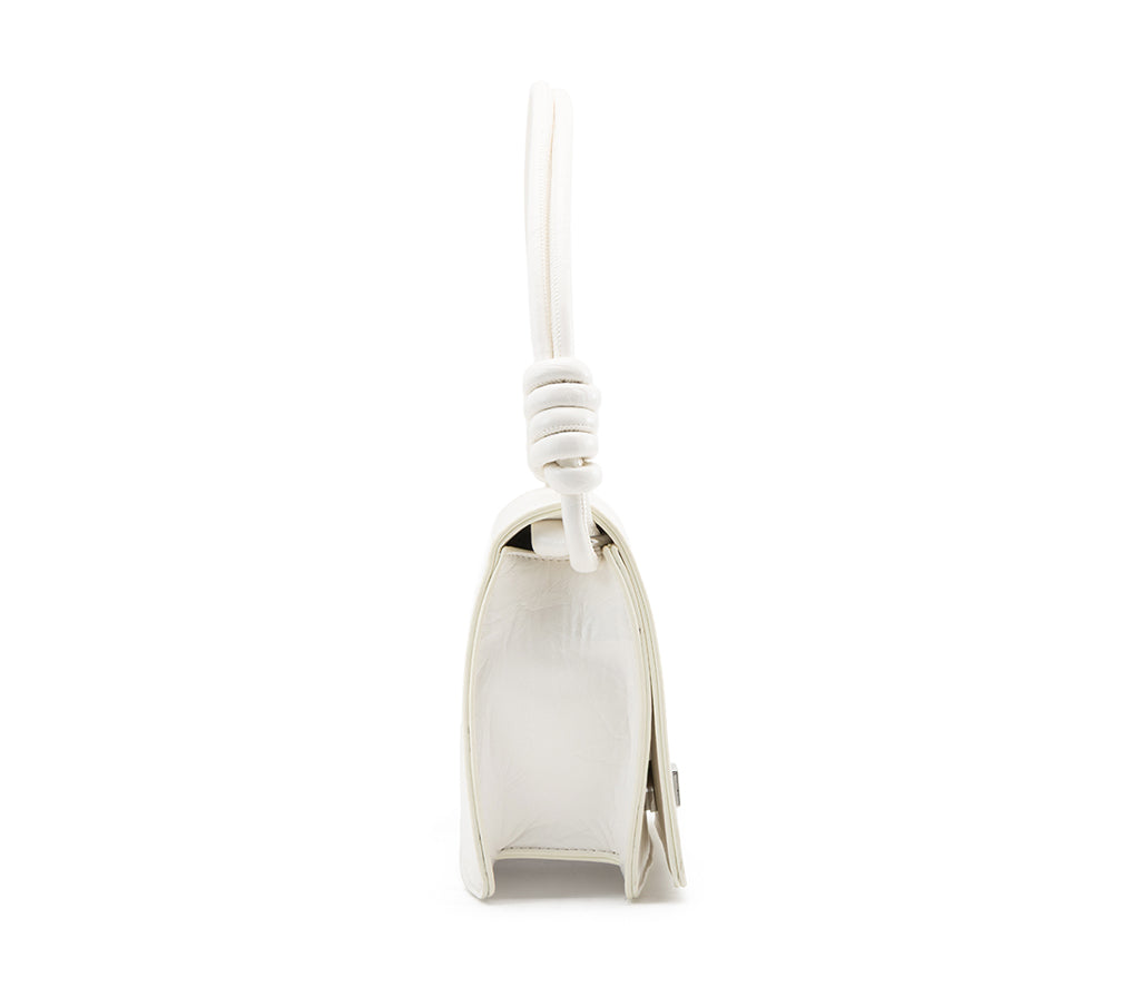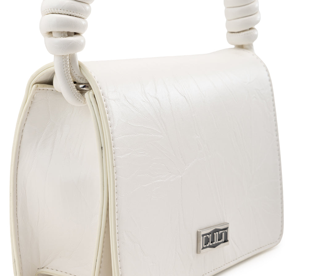 La nuova borsa spalla modello Simon firmata Cult per la stagione SS26 è realizzata in ecopelle bianca e fonde design strutturato e finiture metallizzate. Caratterizzata dall'iconico logo in placca e un manico con dettagli annodati, è l'accessorio cool definitivo per un look audace e senza compromessi. Abbinala a un paio di anfibi estivi Cult con suola track o a dei sandali platform con borchie per un contrasto ultra-cool. Completa l'outfit con un mini-dress nero o un denim distressed per esaltare la tua anima più glam-rock e ribelle. Dimensioni: 22,5x14,5x8