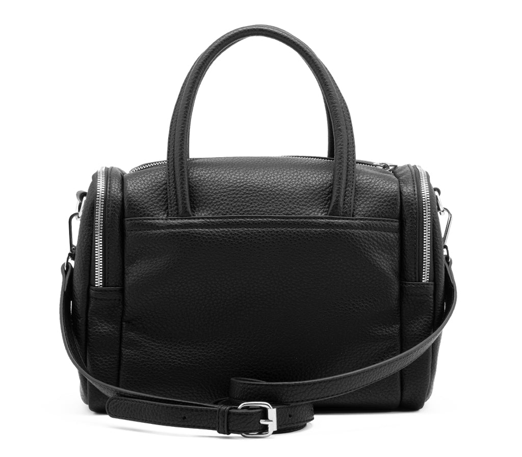 Eleganza strutturata e spirito urban si incontrano nella borsa a bauletto Vega per la stagione SS26, un accessorio versatile progettato per chi cerca capienza e stile in un unico design. Realizzata in ecopelle nera dalla grana naturale, questa borsa si distingue per la pulizia delle linee enfatizzata da una tasca orizzontale frontale con zip e cursori metallici a vista. I doppi manici sottili e la tracolla rimovibile offrono una portabilità impeccabile, rendendola la compagna ideale per attraversare la città con un'attitudine sofisticata e grintosa. Dimnsioni: 30x20,5x10,5.