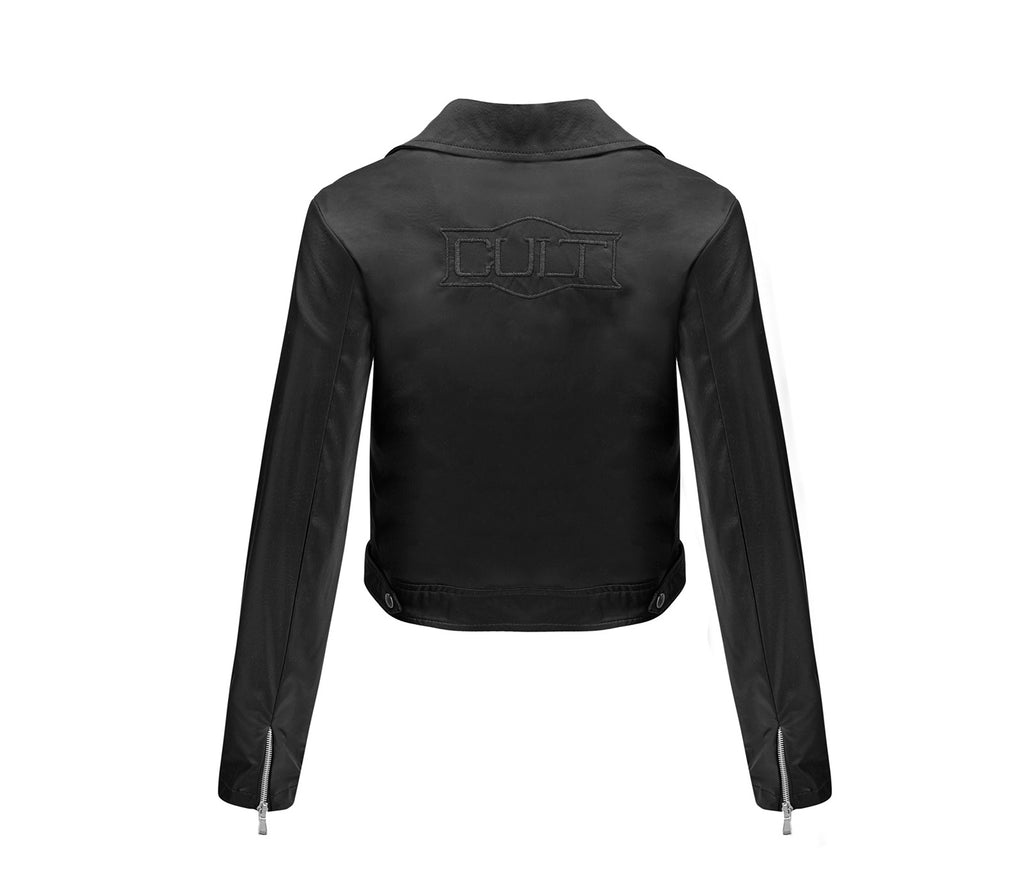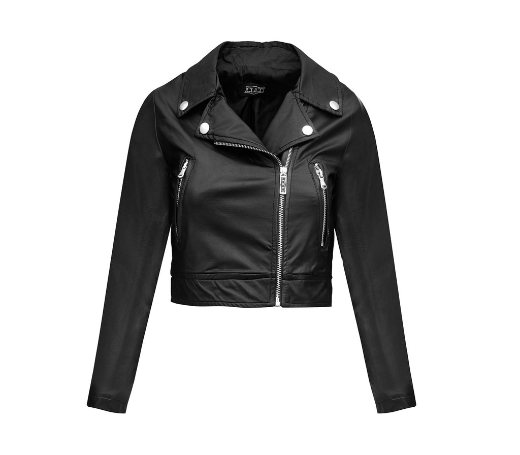 Don't miss this little girl's faux leather studded jacket with two zippered pockets and embroidered logo on the back. Features asymmetrical metal zipper closure, stitched cuts with matching thread, lined. Perfect every day, it will give an edgy touch to the most elegant looks.