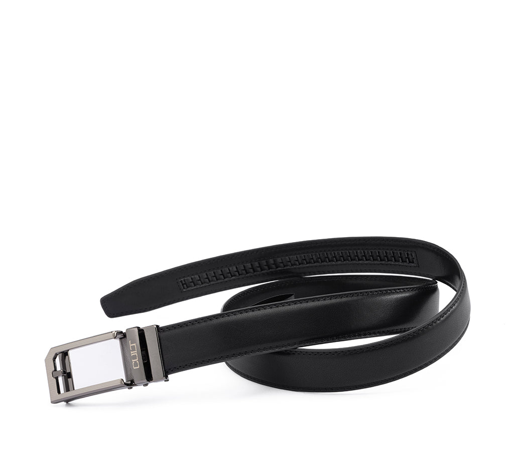Black leather-effect belt with silver rectangular buckle, ideal for adding a chic touch to everyday looks. Simple and versatile design, perfect for casual or urban pairings.