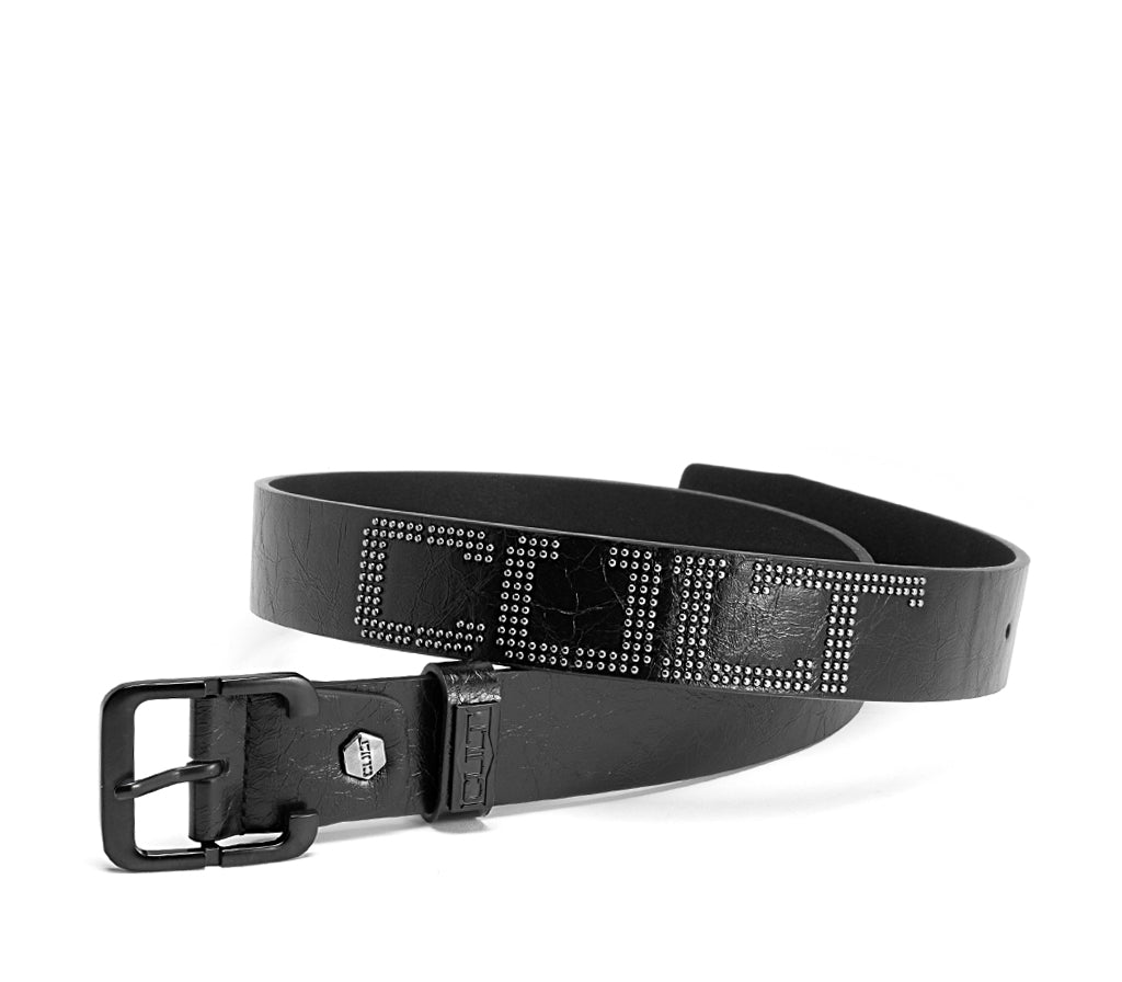 A belt with a strong character, perfect for completing a glam-rock look. The distinctive detail is the "CULT" inscription formed by mini metal studs, which gives a bold and recognizable touch. Available in two sizes.