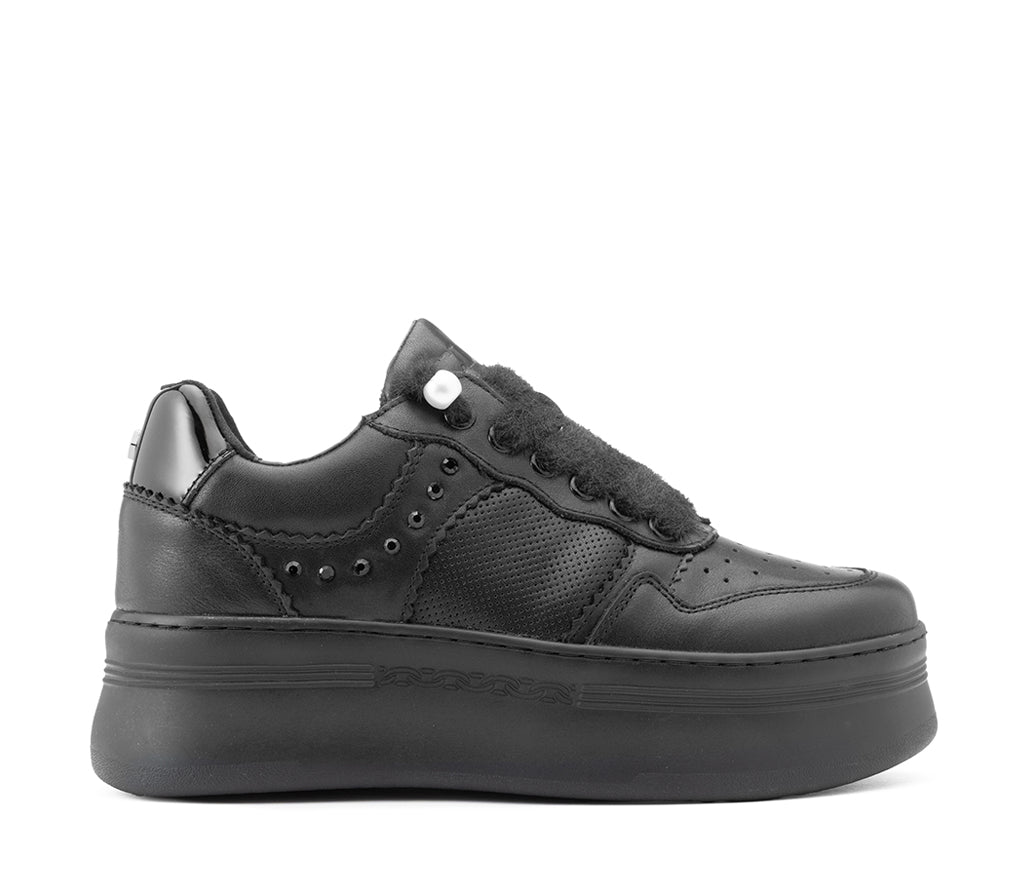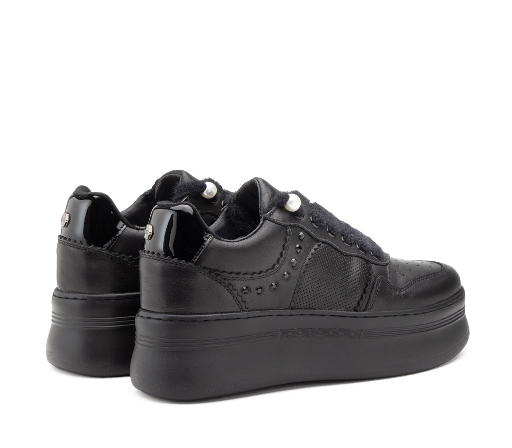Total black platform sneakers. Light dots and soft tone-on-tone faux fur laces make this model unique, recalling the glam-rock soul of the brand. Designed for those who love black in all its forms, bold lines and irreverent details. An explosive mix, for those who love to dare, always. The second pair of black nylon alternative laces is included.