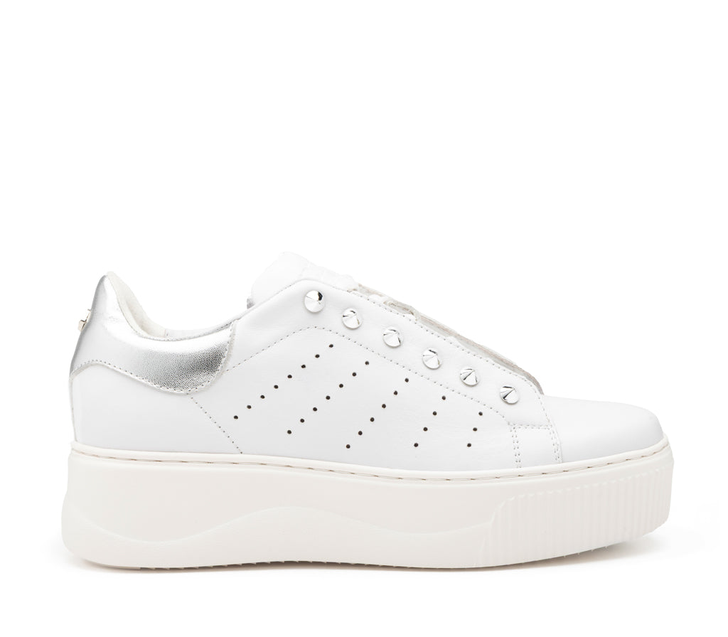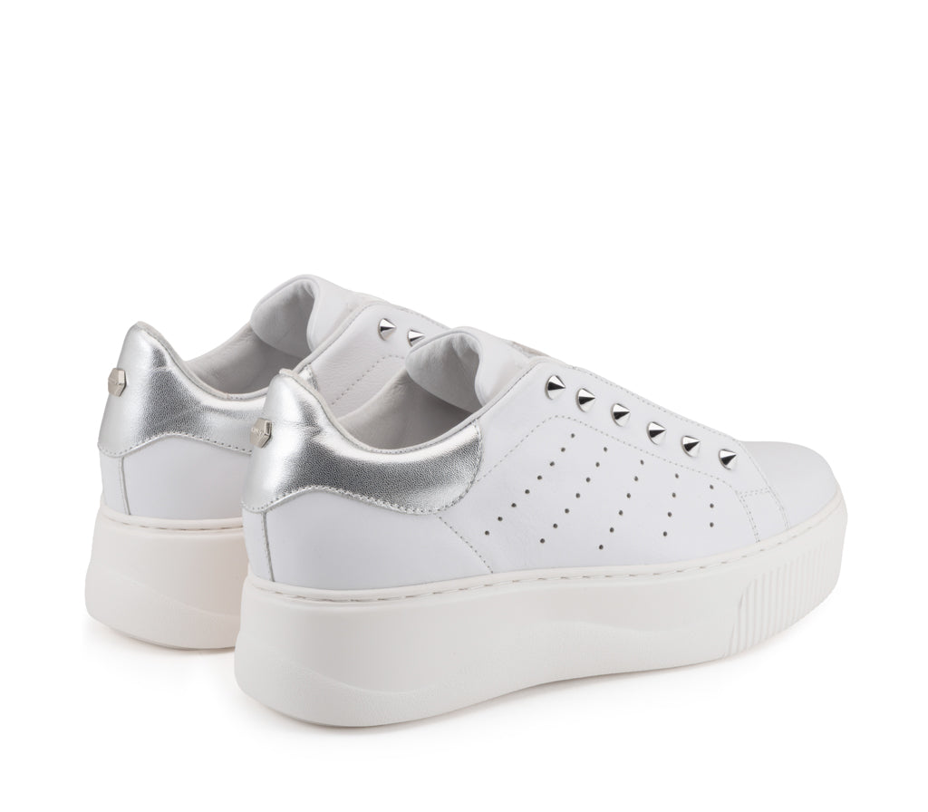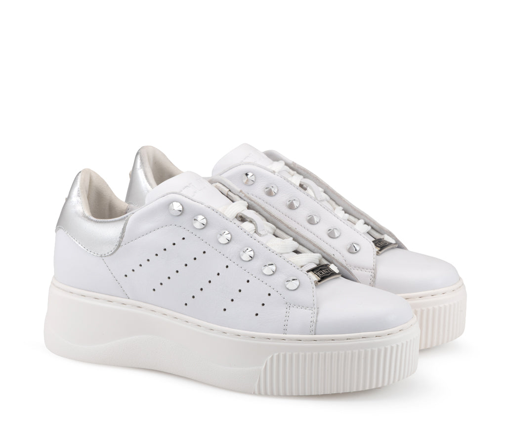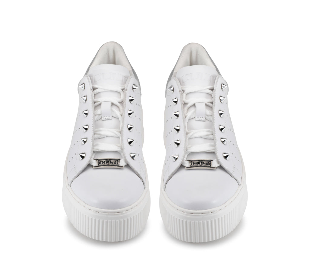 L’estetica punk-chic si rinnova: queste sneaker in pelle colpiscono per i dettagli di borchie metalliche che illuminano la tomaia. Un design bold completato dalla maxi suola platform, ideale per chi vive la città con spirito indipendente.