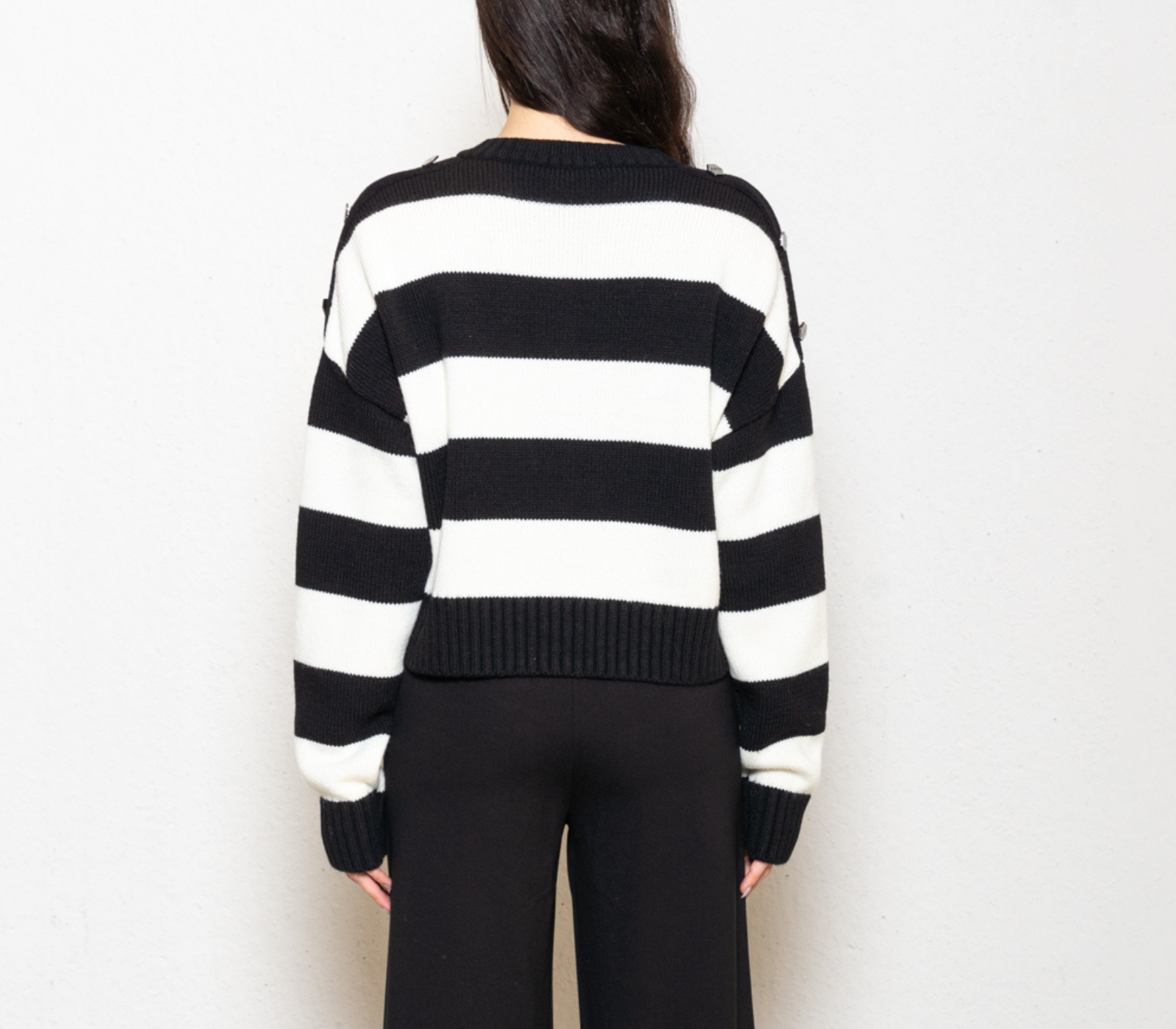 Every wardrobe needs a Cult style that is easy to wear and designed to last. This striped pullover is made from a luxurious wool blend and features a row of decorative buttons on the shoulders.