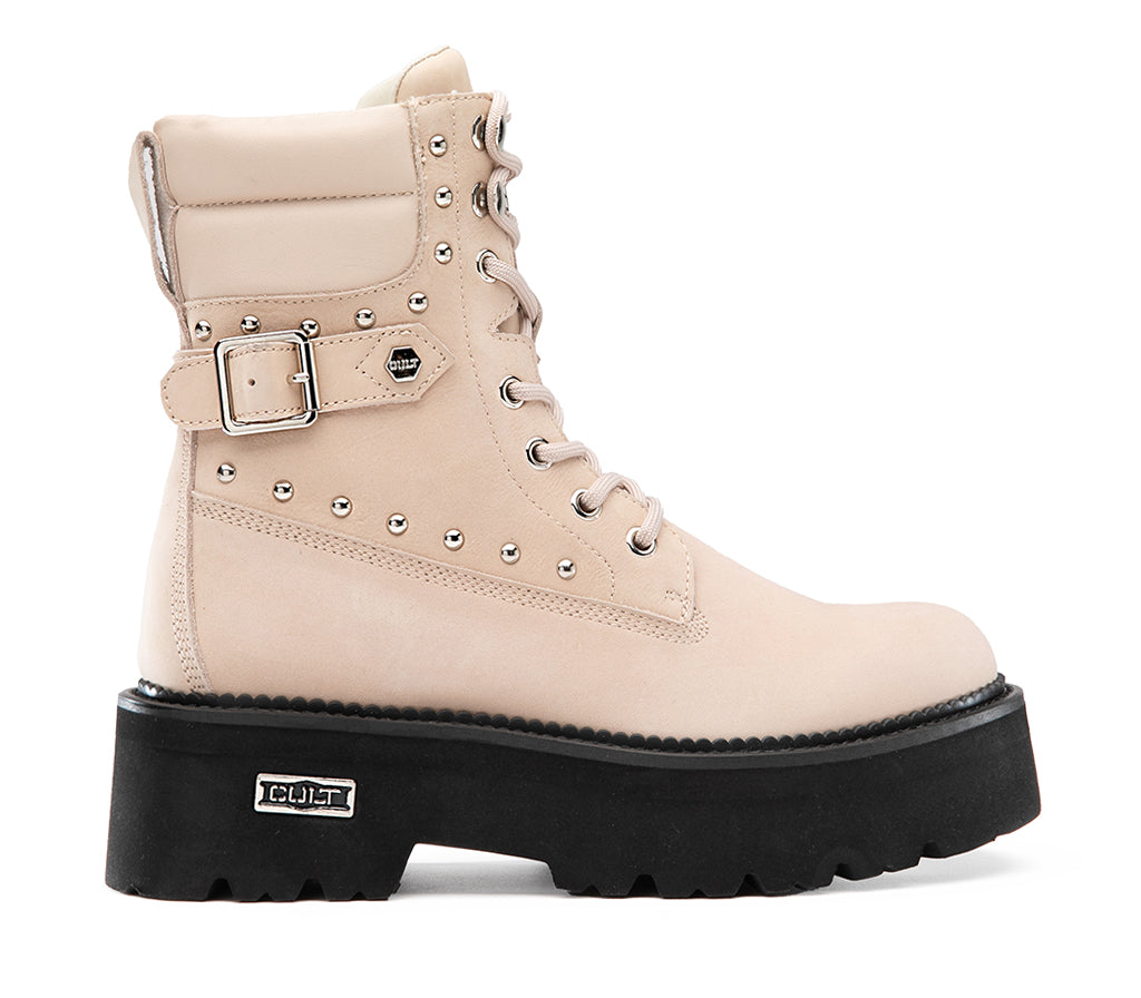 A softer version, but still striking. In off-white nubuck, it retains strong lines and a bold spirit. A light color on a battle-ready model: the contrast defines the style.