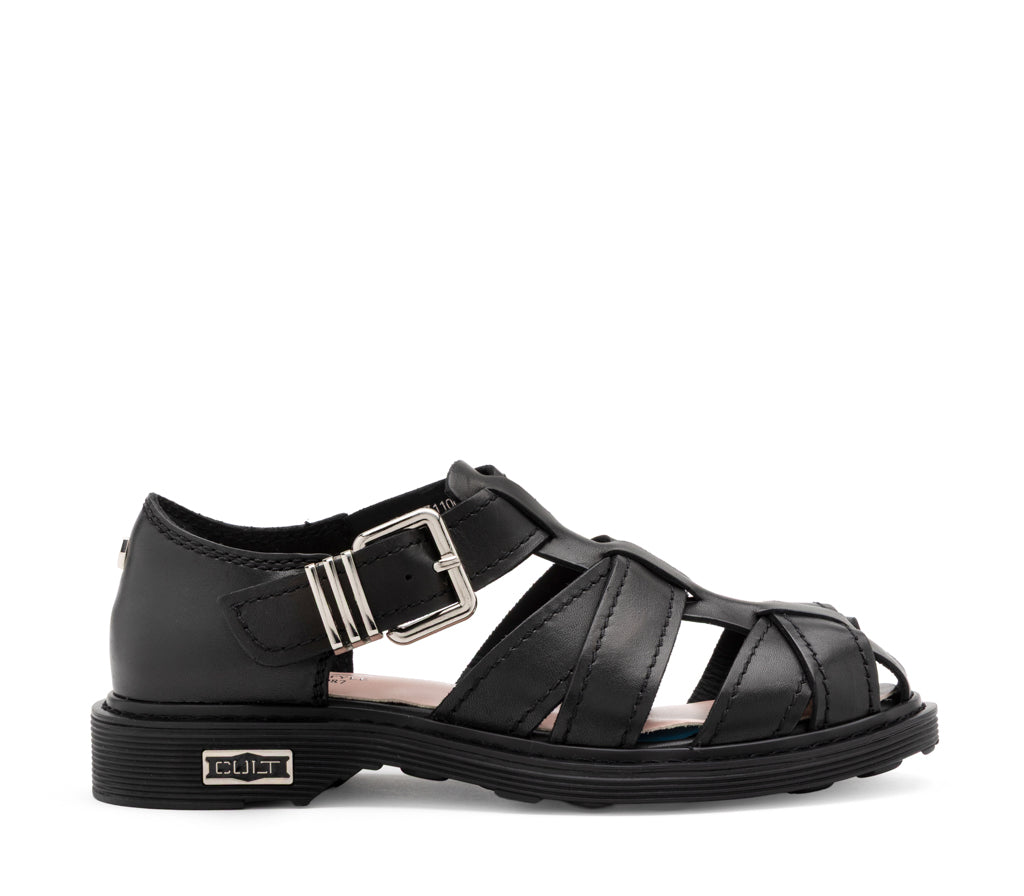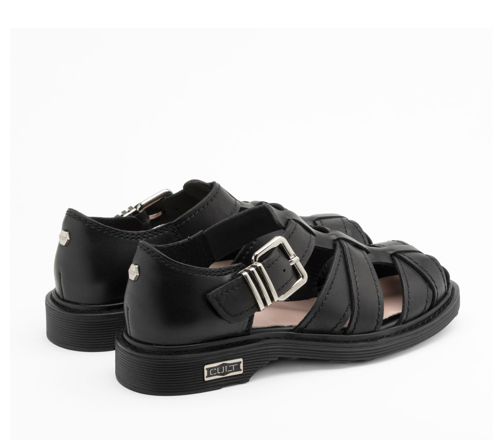 L’essenza del gladiatore moderno: questo sandalo in pelle reinterpreta il design fisherman con fasce bold e un’importante fibbia metallica. Un’anima indipendente e grintosa che eleva il concetto di sandalo estivo in pieno stile glam-rock.