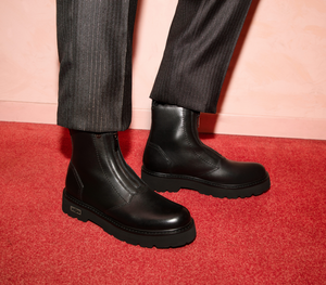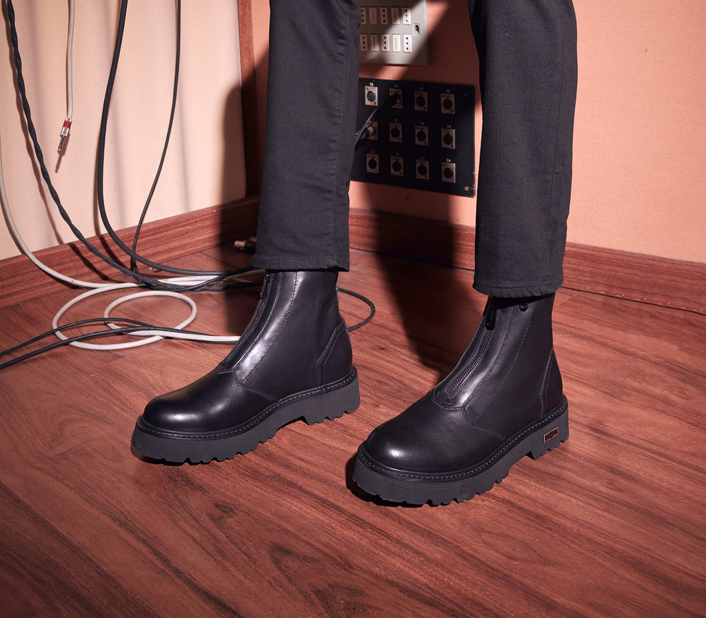 Cult's black leather ankle boots combine timeless lines with contemporary character. Set on an extra-light lugged sole with the brand's iconic metal logo plaque, they are made of soft leather and feature a prominent metal zipper at the front.