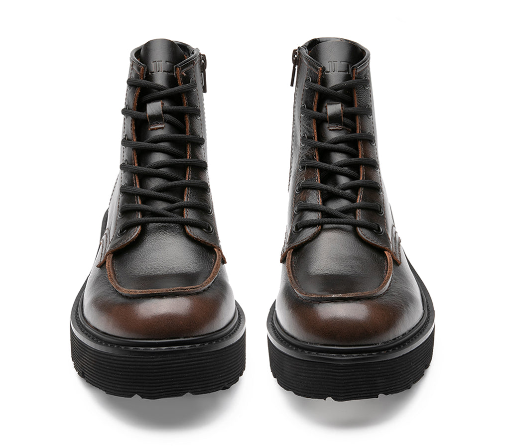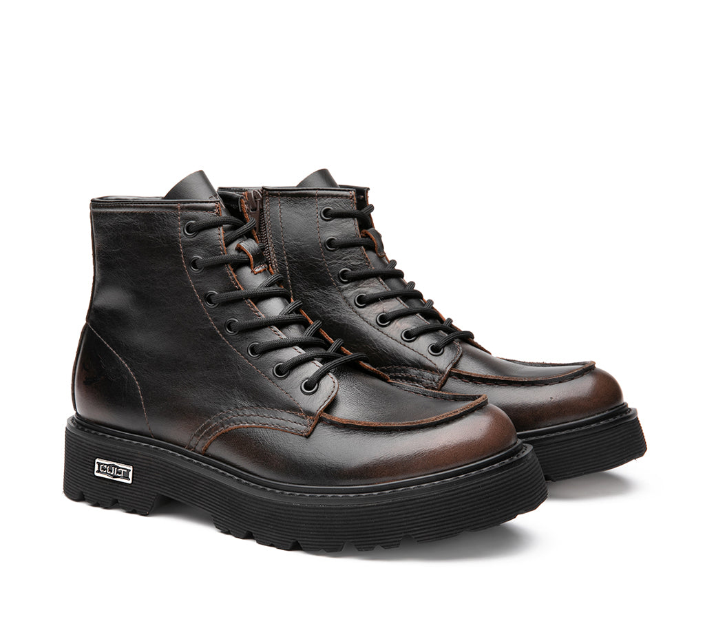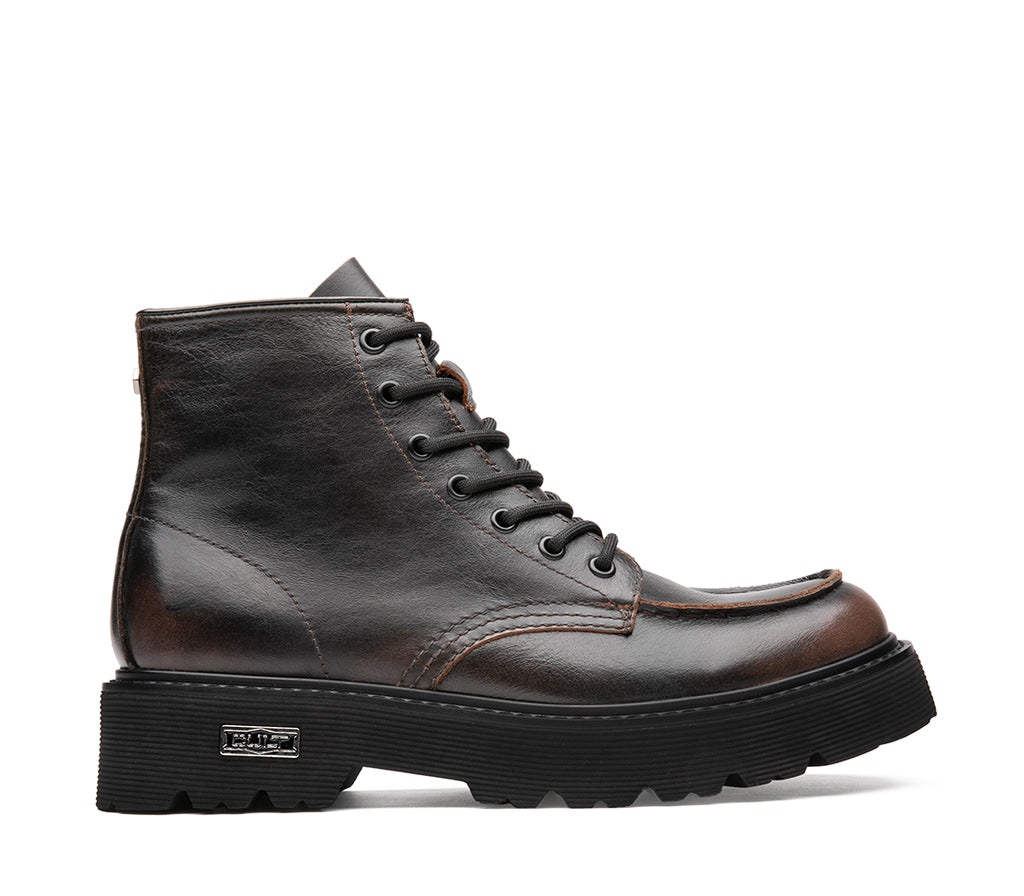 Timeless and gritty, these leather amphibians by Cult are inspired by the combat world and return in a new black/brown variant. With a lace-up closure, high-top silhouette, ulta-light rubber sole and toe cap with exposed stitching, they are embellished with the unmistakable lettering logo. Perfect for those who live the city at a brisk pace, love long walks or simply never give up a look with character