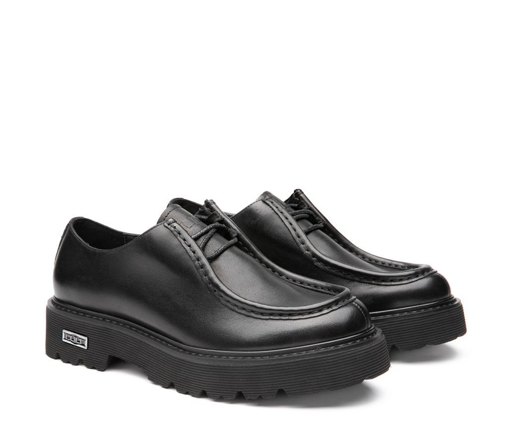 Made of black leather, these derby shoes from Cult have a structured round-toe shape and exposed stitching, rest on thick but lightweight EVA soles and are finished with logo details and metal eyelets.
