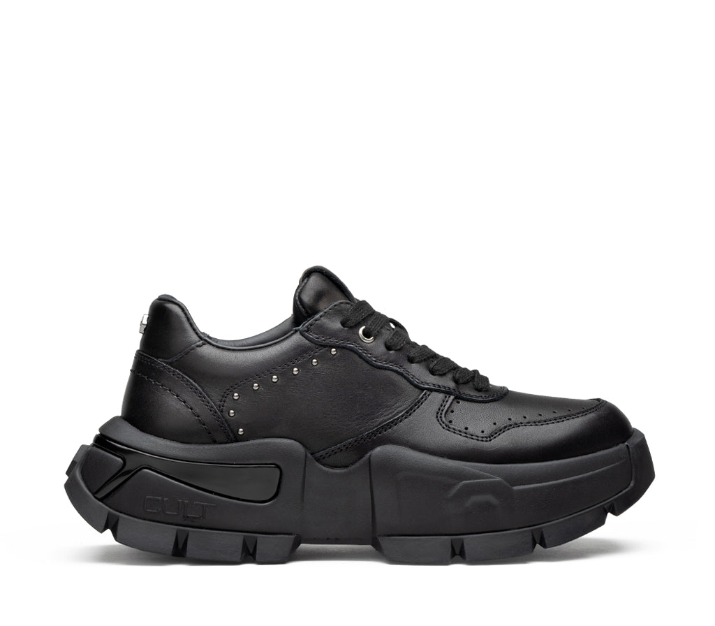 Low-top sneaker in black leather with metallic studs details that give a bold and glam-rock character. Bold and contemporary design, perfect for those who want to stand out in style.
