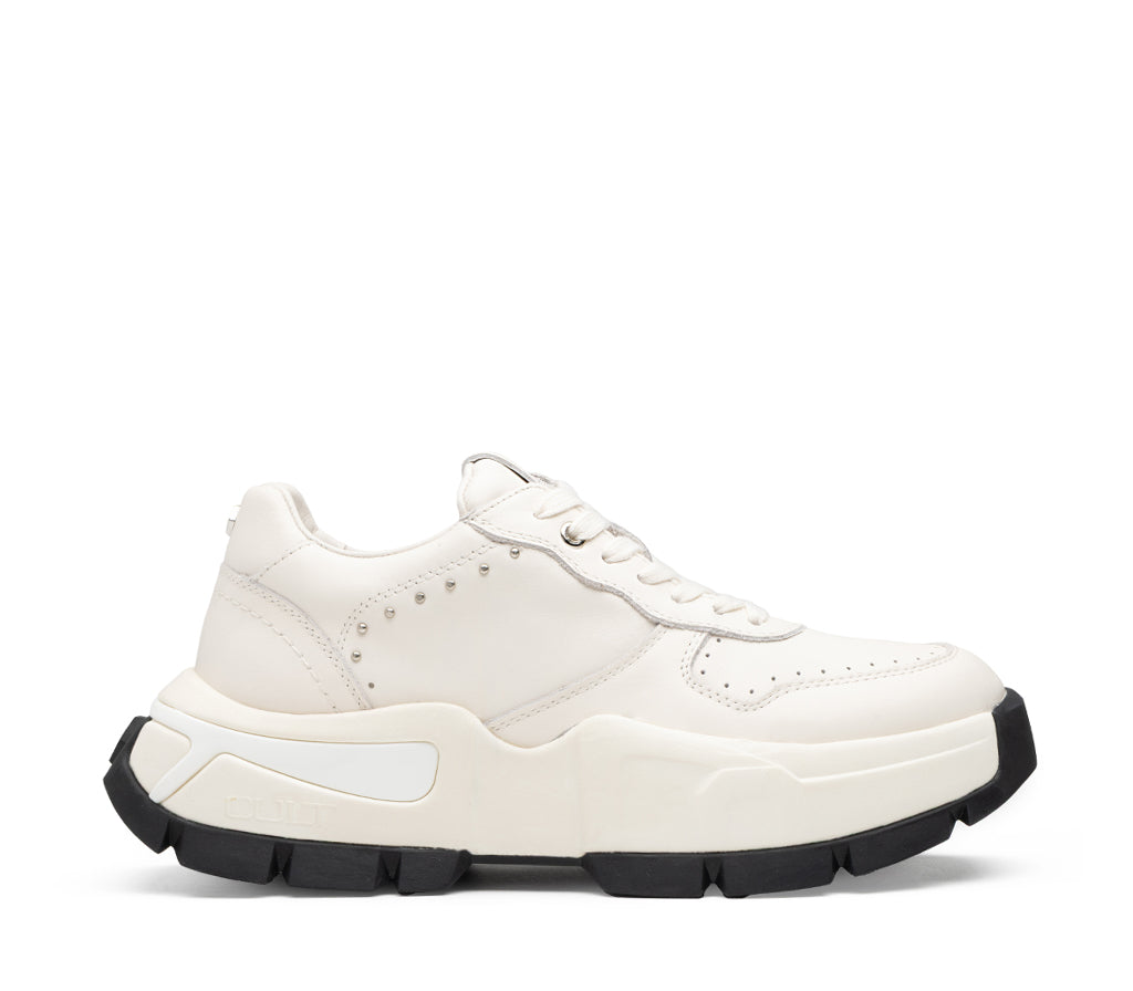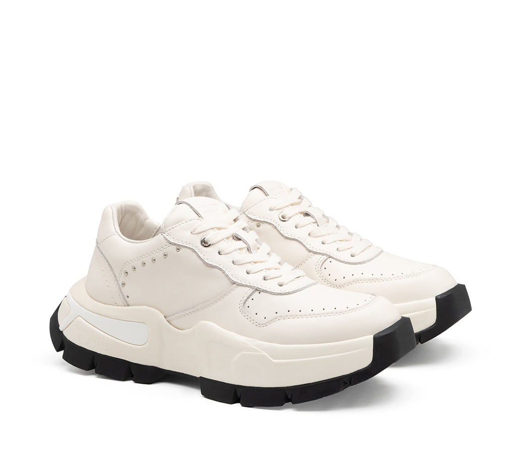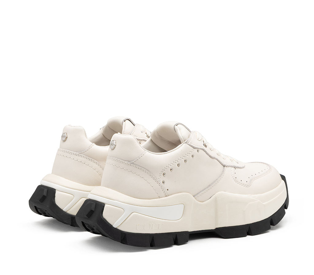 Clear and bright version of the Taylor sneaker, in off-white leather with contrasting black rubber sole. Refined design, discreet but assertive, ideal for modern and sophisticated looks, in perfect CULT style.