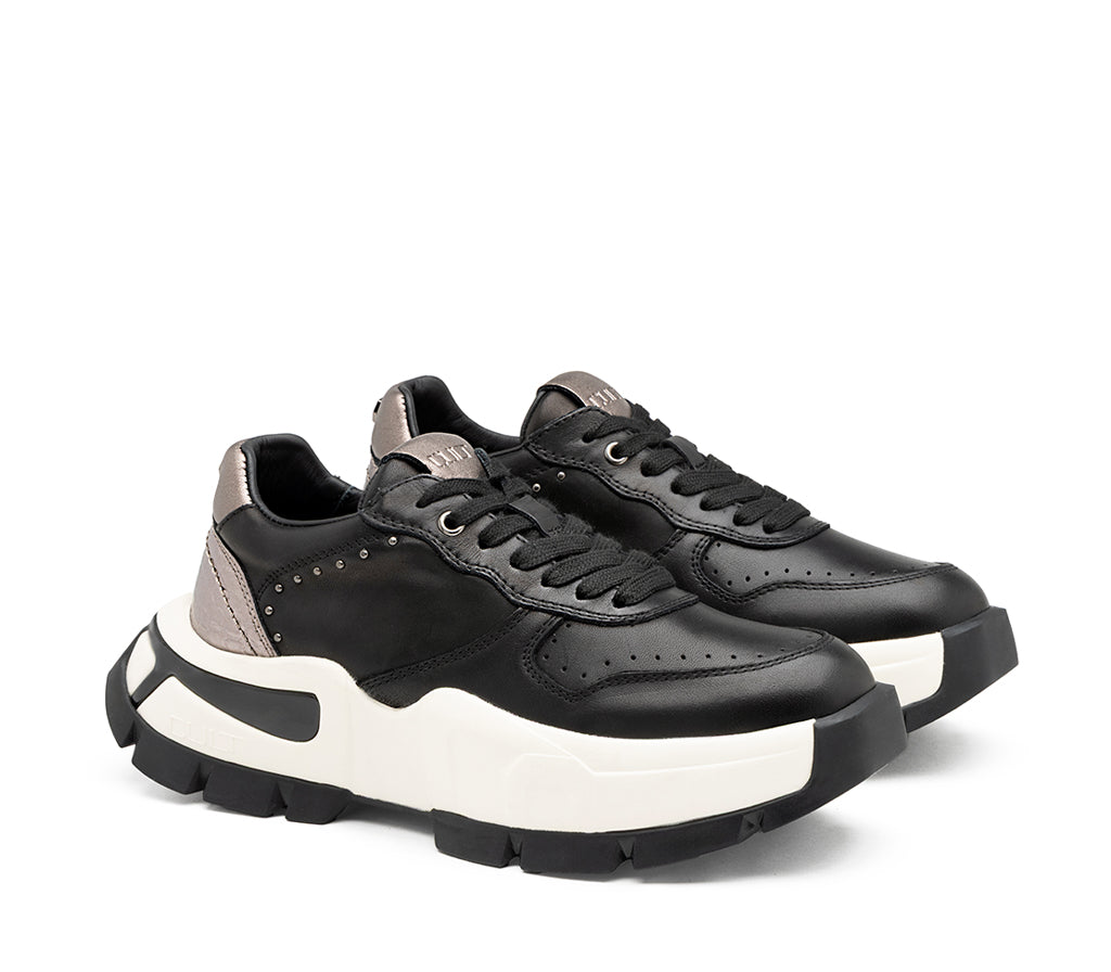 Black leather model with gunmetal laminated crocodile print details. A bold and sophisticated design for those who love precious textures in perfect CULT style.