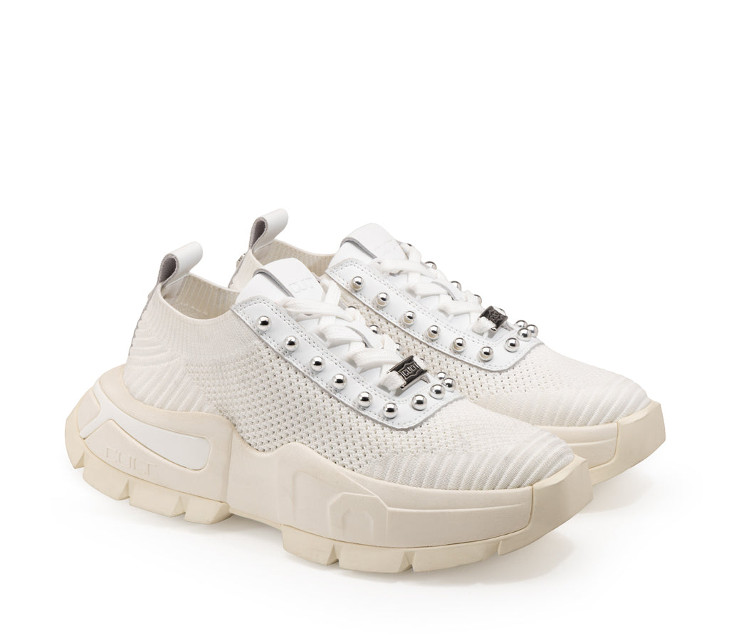 L'eleganza incontra il design tecnico nella sneaker Taylor Pearl. Caratterizzata da una tomaia in maglia stretch (knit) che avvolge il piede come una calza, questo modello si distingue per l'applicazione di sofisticate perle lungo l'allacciatura. La suola chunky ultra-light a contrasto completa un look glam rock contemporaneo, perfetto per chi non rinuncia mai ai dettagli femminili.