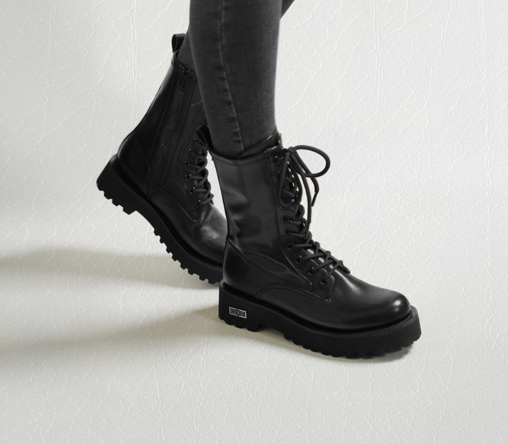 The brand new boots from the Cult WONDER line, timeless and bold, are made of vegan leather with lace-up closure and lug sole. Rock, bold, and ready to be noticed, they are the perfect companion for those who love an urban and gritty style.These shoes contain no animal-derived components in the upper, inner lining, or treatments and finishes, while maintaining 100% of the CULT DNA. Totallyanimal-free.